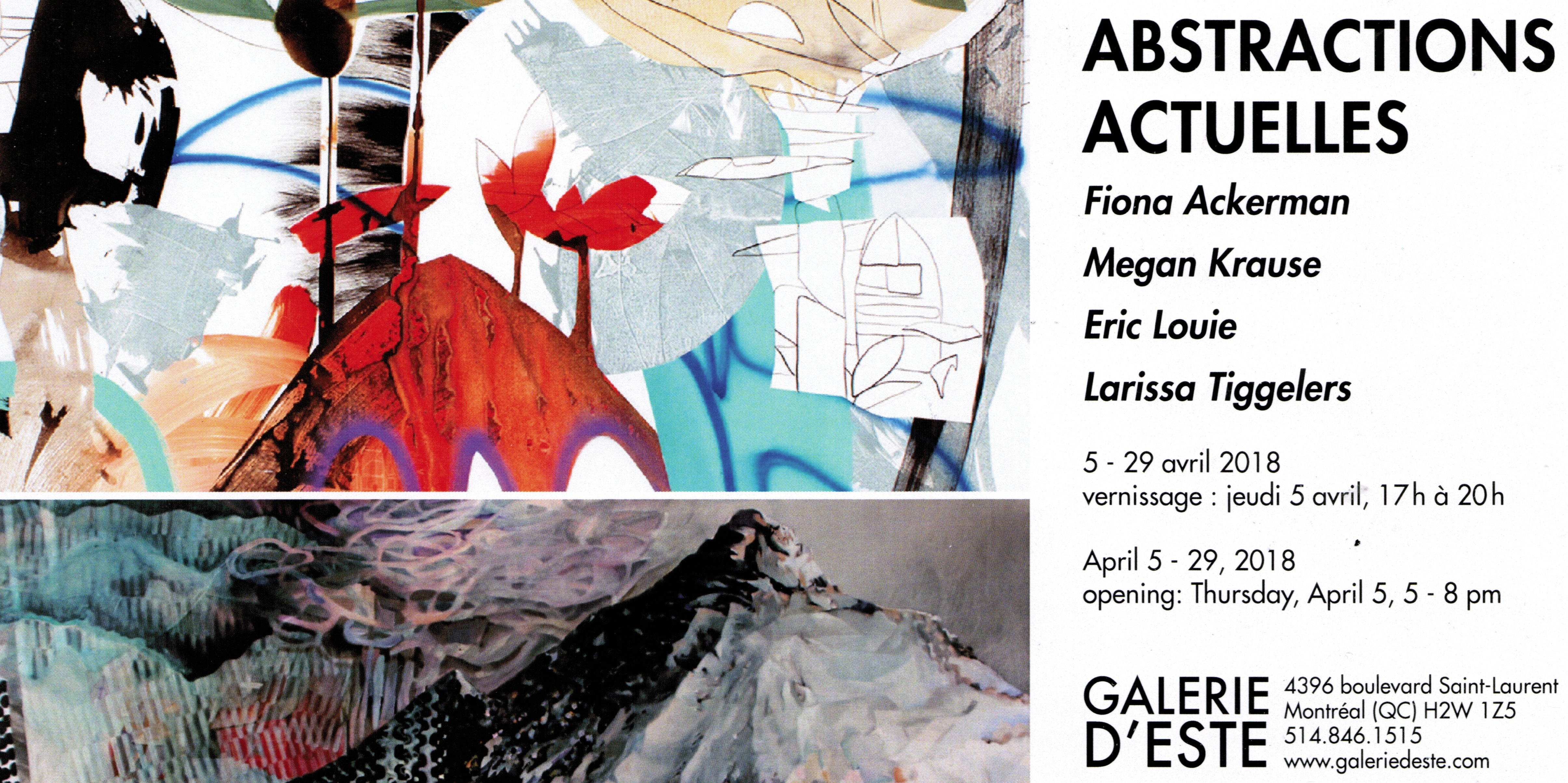 Abstractions actuelles April 5 – 29, 2018 Vernissage: April 5th from 5 to 8 pm Galerie D’Este is pleased to present Abstractions actuelles. Four Pan-Canadian artists are on the bill. All use an abstract pictorial language. But everyone creates a unique visual universe. Abstraction has the peculiarity of being both universal and singular. In the […]